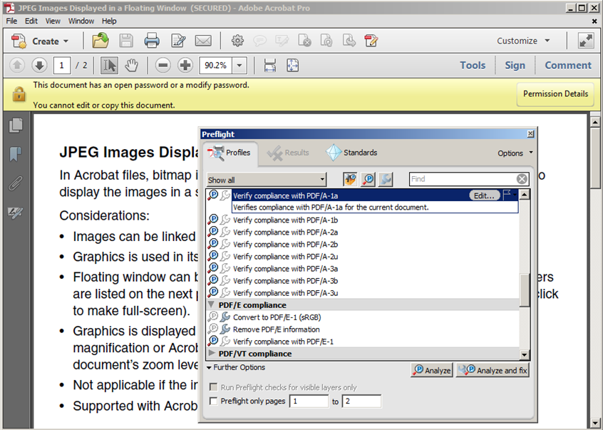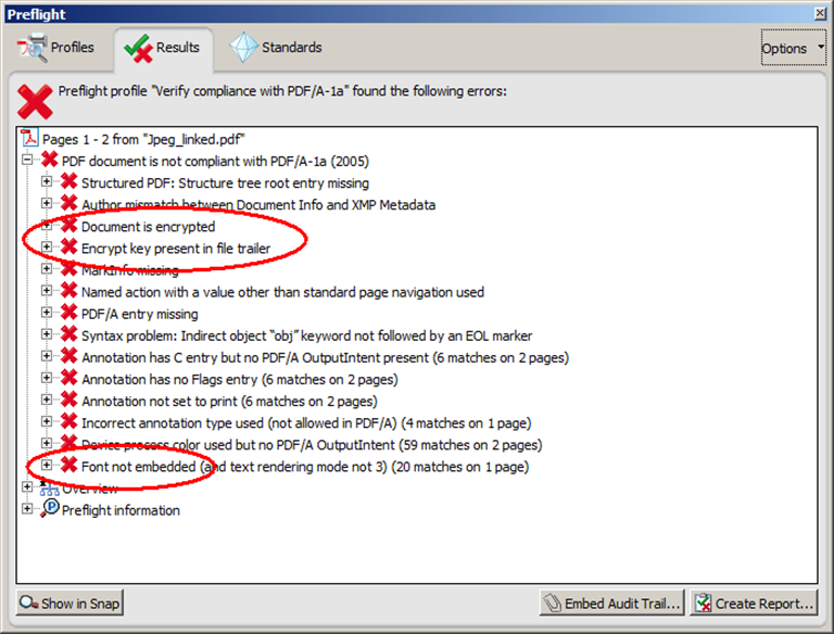 This PDF2 (which isn’t a PDF/A) violates the PDF/A-1a profile in several ways, but supposing we’re only interested in encryption and non-embedded fonts, the relevant information can be extracted from Preflight’s output quite easily. This example demonstrates the overall feasibility of identifying preservation risks with a PDF/A validator, but it is not scalabe to situations where you need to verify large volumes of PDFs. This will be the main focus of the second part of this blog series.