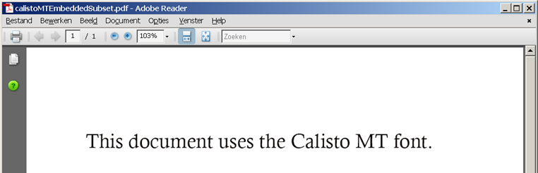 File calistoMTNoFontsEmbedded.pdf uses Calisto MT, but the font is not embedded. Since Calisto MT is a Windows system font, the file looks fine on my Windows PC: