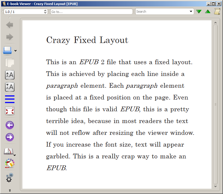 - It uses a fixed, multi-column layout that doesn’t scale in either Readium or Calibre’s viewer (changing the font size has no effect), and I’m wondering if it is usable at all on any handheld devices!