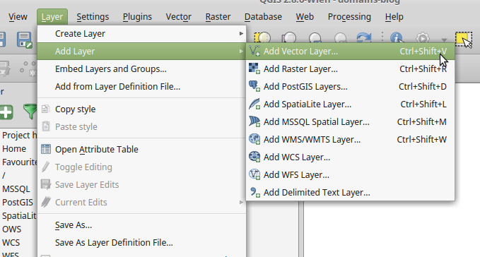 A general discussion of QGIS is beyond the scope of this blog post; however the Programming Historian website has a good introduction to QGIS2. For the analyses covered in this blog post I used QGIS 2.8.6 (which is the slightly outdated version that is in the default Ubuntu software repositories).