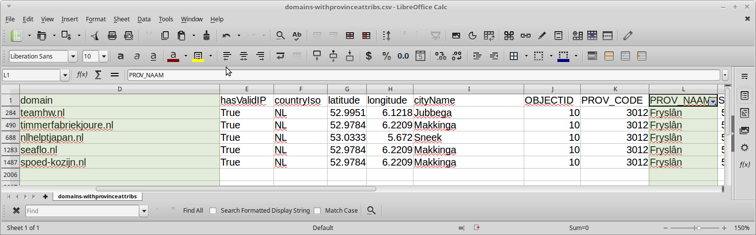 As you can see here, each domain record now contains a column with the corresponding province name (and some additional province-specific columns), and from this we can easily identify the domains that are hosted in Friesland (or any other province):